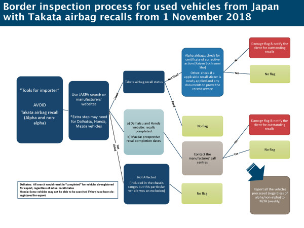 The purpose of this technical bulletin is to outline, for Border Inspectors, the process for flagging vehicles subject to a Takata non-alpha airbag recalls and how to deal with them.