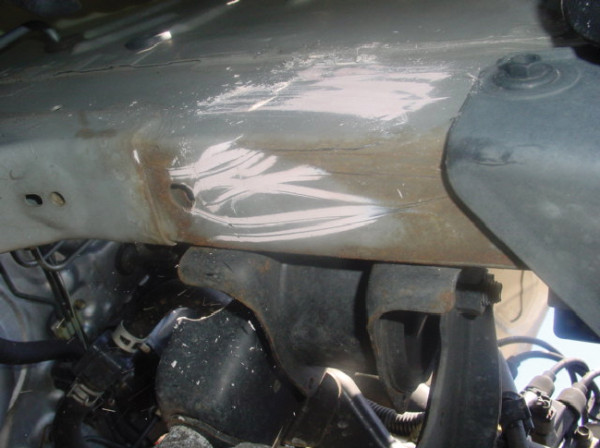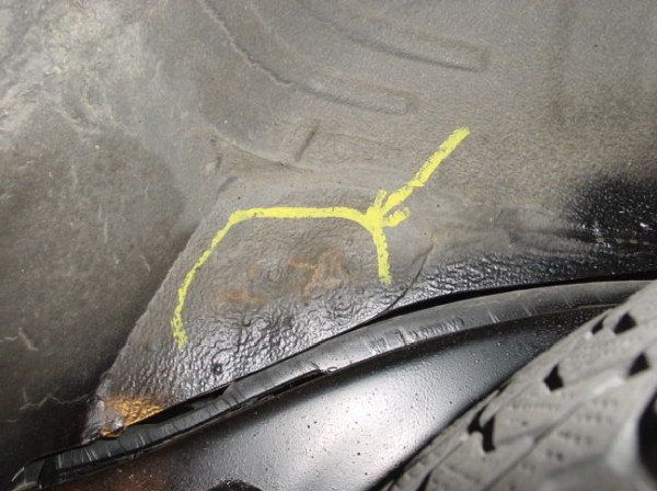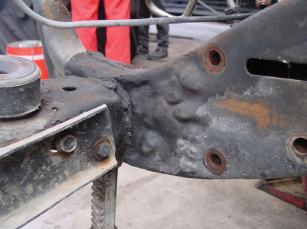Under body damage: tearing of the metal
