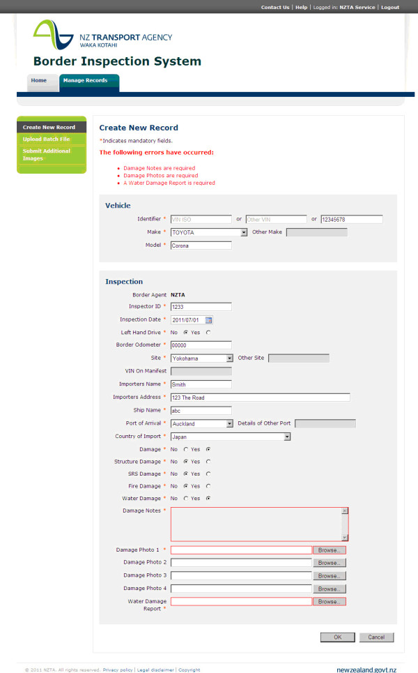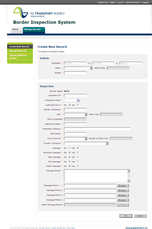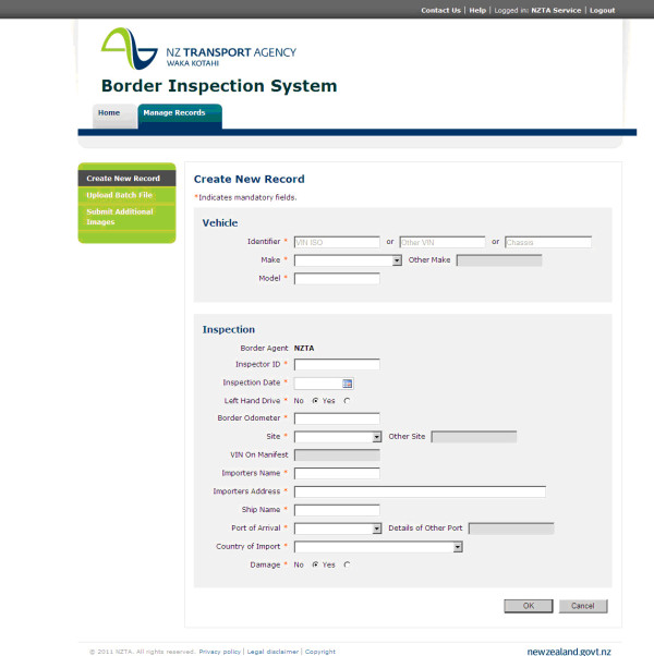 NZTA Border Inspections (BIS Data Entry)