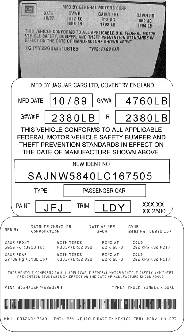 1. A vehicle first registered in New Zealand from 1 April 1994 does not have a valid VIN (Note 1) (Note 3)