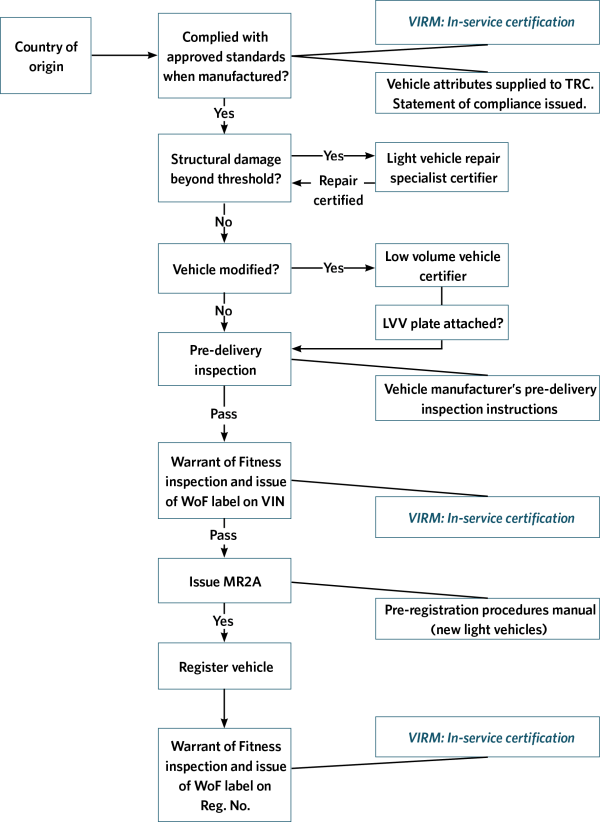 The scope of this manual is the statutory requirements for the entry inspection and certification of new light motor vehicles. It conveys to vehicle inspectors and inspecting organisations for new light vehicles appointed by the NZTA (normally the vehicle manufacturer’s New Zealand representative) the conditions of their appointment and the requirements for the inspection and certification of new light vehicles for entry into service. This manual will assist them to achieve correct and consistent standards of inspection and certification.