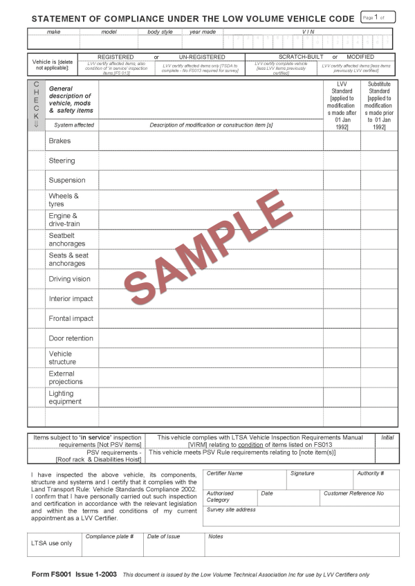 Low volume vehicle specialist inspection and certification may be required if a vehicle is a light vehicle that, since it was manufactured, or last certified for entry, or last certified as a low volume vehicle, has been modified so as to affect its compliance with an applicable requirement.