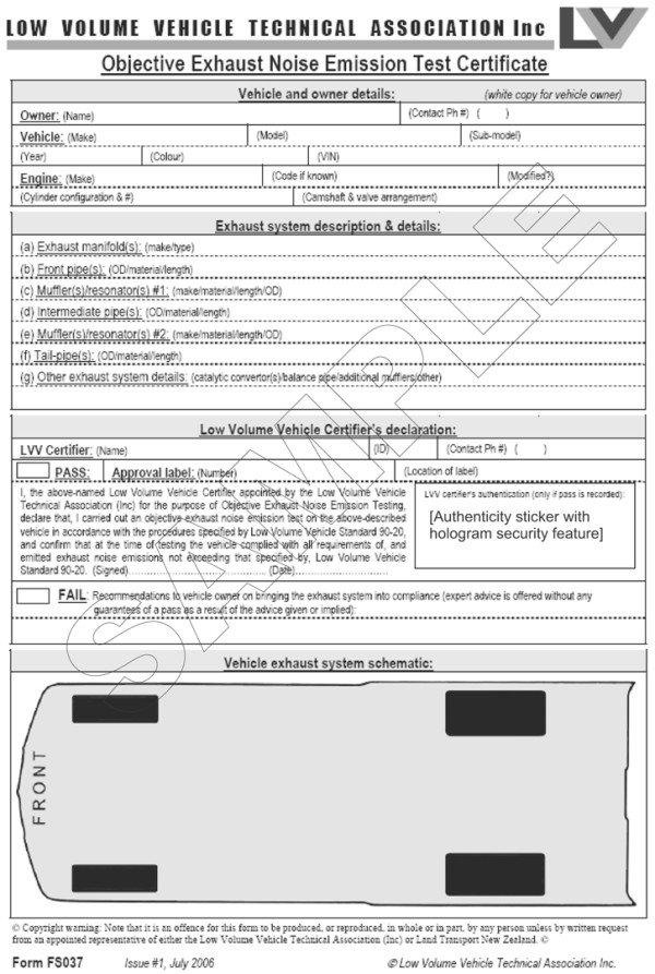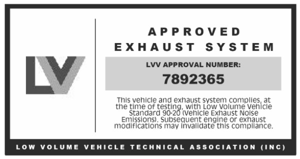 ii. the exhaust system tailpipe is not fitted with a valid LVVTA noise test label (Figure 11-1-2) or an appropriate LVV data plate (Figure 11-1-3)