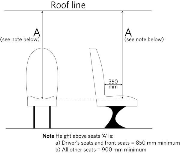 Height above seats is the vertical clearance above the seat cushion when measured 350mm in front of the backrest.
