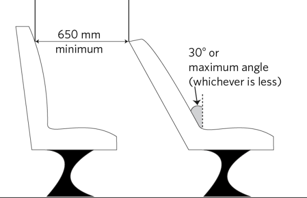 For reclinable forward- or rearward-facing seats which face in the same direction, the seat spacing of 650mm is measured either (Figure 7-2-4):