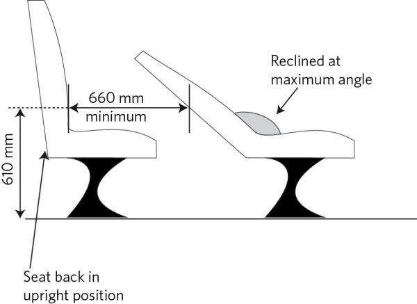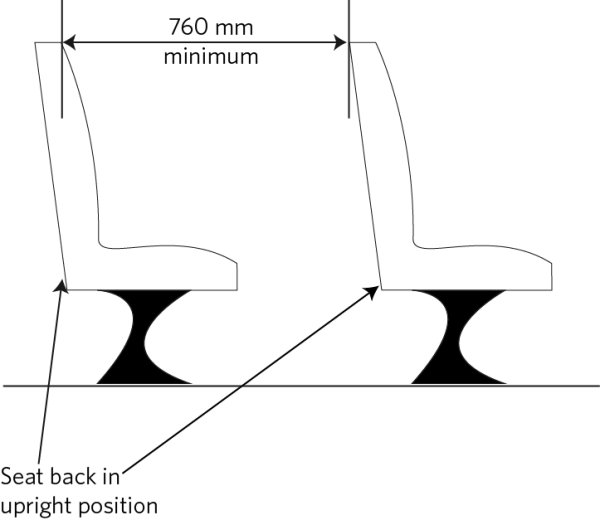 For reclinable forward- or rearward-facing seats which face in the same direction, the seat spacing of 760mm is measured: