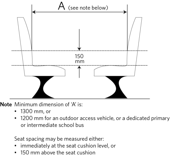 For non-reclinable forward- or rearward-facing seats facing in the same direction, seat spacing of 650mm is measured horizontally, immediately above the seat cushion, or 150mm above the seat cushion, between: