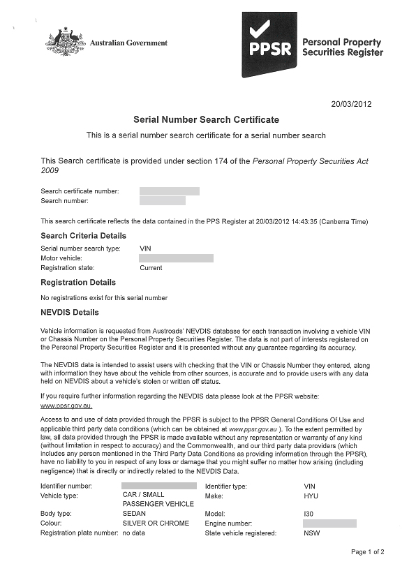 PPSR certificate