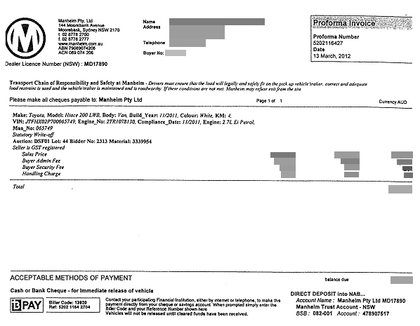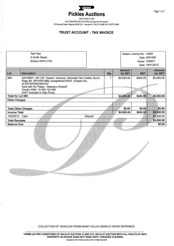 All Pickles auction documents will contain the 'P' watermark. The Transport Agency will accept invoices sent by email on the proviso that they are emailed directly from Pickles to the KSDP or certifier.