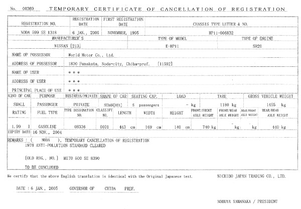 21 Sample temporary de-registration certificates (Japan)