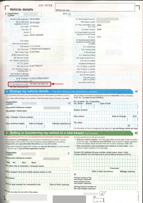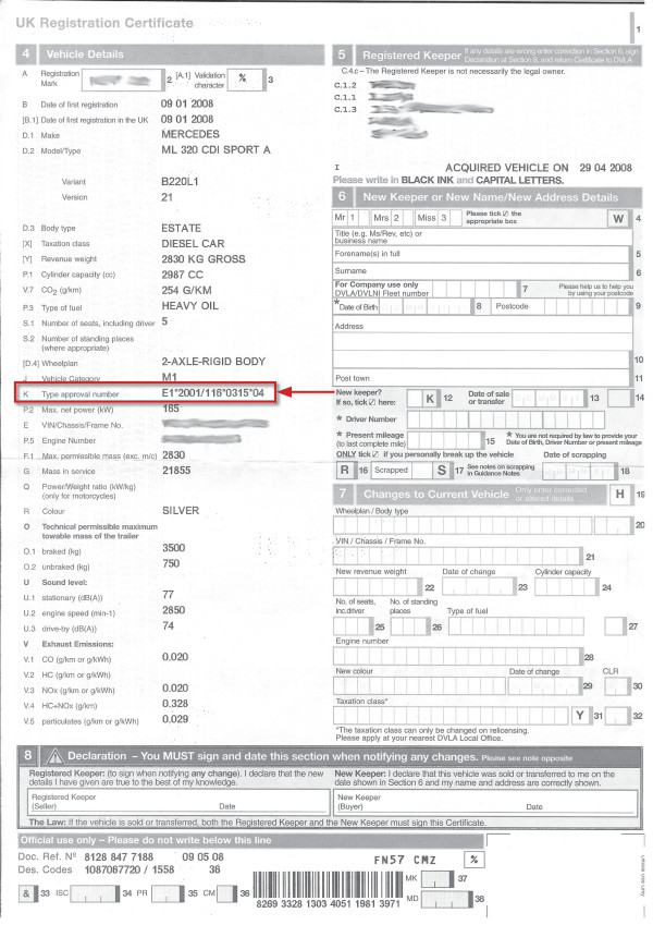 UK registration certificate with European type approval