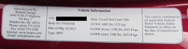 A vehicle converted into a motorhome that has an FMVSS second stage of manufacture plate/label |