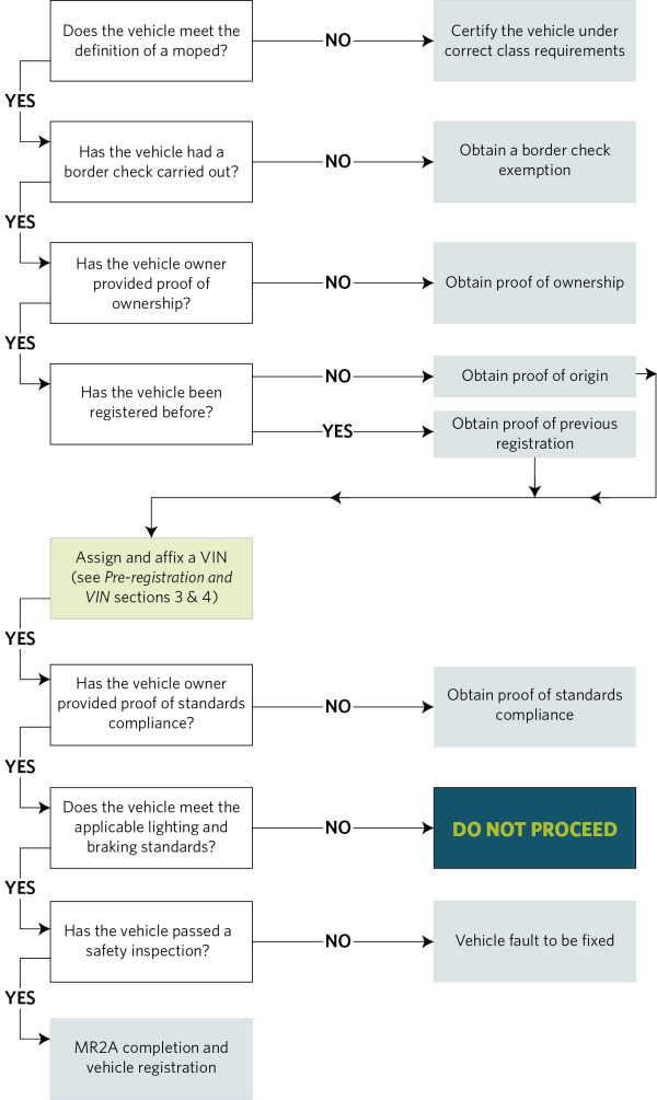 The following flowchart explains the procedure for processing a new parallel imported moped for entry certification.