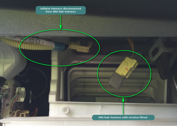 Page amended 10 December 2023 (see amendment details) 40 Passenger airbag inspection – used imported vehicles from JapanNovember 2016 | Version 2 BackgroundSince 2013, a number of vehicle manufacturers have initiated recalls to replace frontal airbags manufactured by Takata due to a risk of incorrect deployment that can result in the release of metal shrapnel from the airbag inflator unit. Due to the number of affected vehicles, the supply of replacement parts has been delayed in a number of cases, resulting in lengthy delay before recalls can be completed. The NZ Transport Agency has been made aware of a practice in Japan where front passenger airbags have been disconnected by the vehicle manufacturer’s agent as an interim measure pending the availability of parts needed to carry out the recall on the vehicle. The disconnection process involves fitting an electronic component to simulate the presence of the airbag so that the warning light operates as normal. A number of vehicles with disconnected airbags have already been imported into New Zealand in this condition, and the influx of vehicles in this condition is likely to continue in the foreseeable future. Land Transport Rule: Frontal Impact 2001 requires that frontal airbags and airbag warning lights must not be rendered inoperable. As such, vehicles that have had their airbags disconnected cannot be entry certified. Since version 1 of this bulletin, the Transport Agency has received additional information on the vehicles that may have had their passenger airbags disconnected, and how to determine whether a recall has been completed on an affected vehicle. This enables the range of vehicles requiring physical inspection to be limited to those identified in the attached Table 40-1-1. This is a change from the previous version of this bulletin: the list is now a list of included models that must be checked. Action requiredFor used vehicles from Japan identified in Table 40-1-1, entry certifiers are required to visually verify that the front passenger airbags are present and connected to the SRS system. This is to be achieved by accessing the airbag unit and checking that it is properly connected to the SRS wiring loom, ensuring that there is no evidence of tampering and that no devices designed to defeat or ‘fool’ the SRS self-diagnostic function are present. If the airbag is disconnected, it must be reconnected before the vehicle is entry certified. SRS system wiring and plugs are yellow in colour. Below are images of a passenger airbag that has been disconnected with a resistor put in place to defeat the self-diagnostic system (Figure 40-1-2), and another with the airbag properly connected (Figure 40-1-3). Once it has been determined that the front passenger airbag is properly connected to the SRS wiring loom, and that the SRS warning light is operating correctly, the following wording must be entered into the notes field in LANDATA: FR PSNGR Airbag Inspected Note: normal safe working practices must be followed for any work on airbag systems. The vehicle’s battery must be disconnected at least five minutes prior to commencing work on any system involving a pyrotechnic component. ExceptionsNo visual inspection is required if there is evidence that the Takata airbag recall has already been completed on the vehicle. This can be determined by the presence of a sticker located in the driver or passenger door frame area (usually near the striker). This sticker will resemble the one in the below image, and contain the official Japanese recall campaign number. If the number on the vehicle being inspected matches one in Table 40-1-1, the recall has been completed and no visual inspection of the passenger airbag is necessary. The recall campaign numbers listed in Table 40-1-1 do not correspond to particular models, so any of the numbers listed against a make will be acceptable. Figure 40-1-1. Airbag recall completed sticker