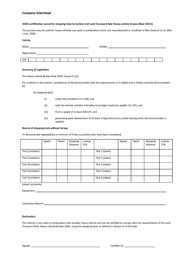 32. a vehicle not used in combination, manufactured in NZ and first registered on or after 1 July 2008 is not certified to Schedule 5 or Section 6 (Note 1) of the Rule.