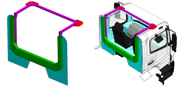 A modern truck cab is designed to absorb and dissipate the ensuing energy of an impact around the body of the cab. Particular attention is required to balance the thickness and stiffness of a reinforcing frame and the parts of the cab to which it is attached. As an energy-absorbing system, overbuilding or over-reinforcing the cab may lead to an unsafe condition.