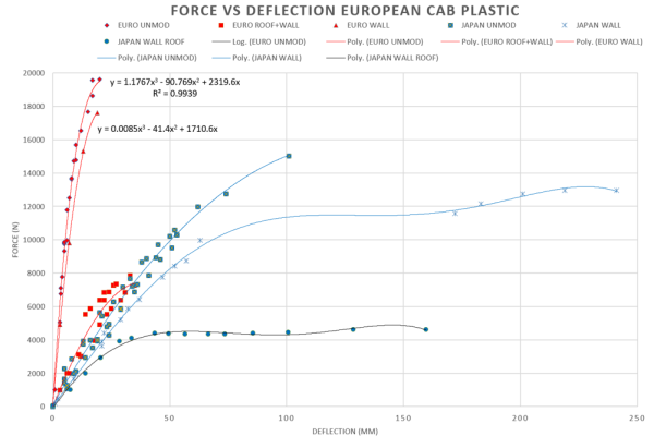 Figure 20-1-8. Force vs deflection Japanese cab - plastic deformation test