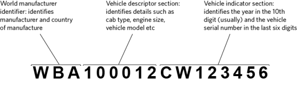 A valid VIN is a unique number that has been assigned to the vehicle in the vehicle’s country of origin or by a person appointed by the NZTA. It consists of 17 characters that never contain the letters I, O or Q, and that is capable of being decoded to provide identifying information about the vehicle.