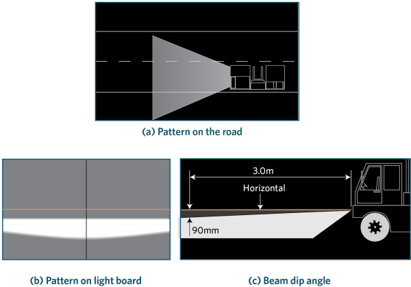 c) the centreline of the light beam projects to the right of the vehicle’s centreline or up from the horizontal (Figure 4-1-2), or