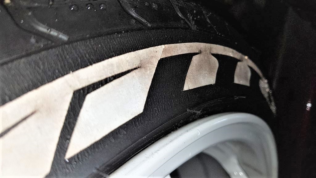 5. An asymmetric tyre is fitted to a vehicle with the ‘inside’ tyre wall facing outwards.