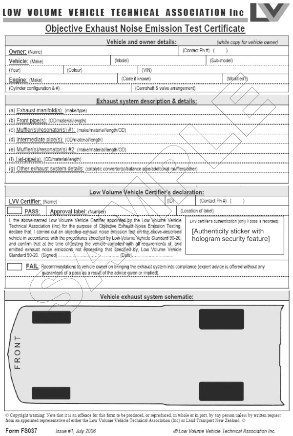 2. A vehicle that is presented for a WoF or CoF because it has been ordered off the road by an enforcement officer for non-compliant exhaust noise must pass an LVVTA objective noise test before the vehicle may be issued with a WoF or CoF (Note 4).