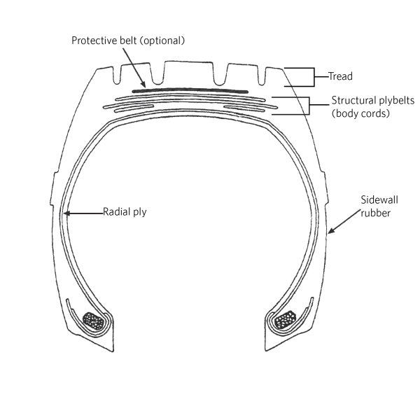 Figure 10-1-1. Cross-sectional representation of a heavy vehicle radial-ply tyre