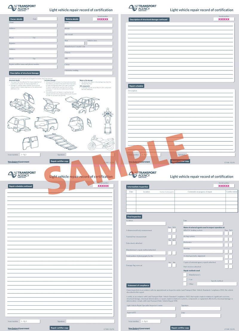 - When a vehicle is presented to the repair certifier it is their responsibility to ensure that a thorough inspection of the whole vehicle is carried out. The repair certifier is only able to issue an LT307 after the vehicle has completed an initial entry certification inspection.